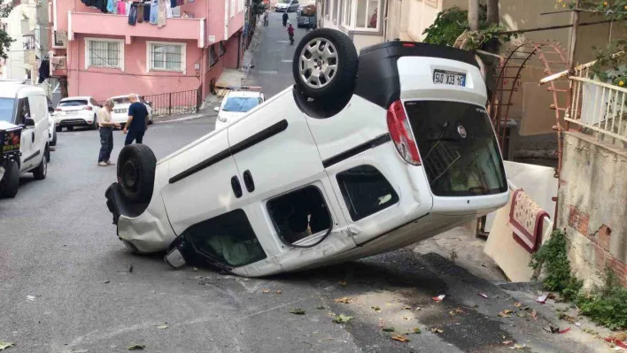 Kağıthane'de freni tutmayan araç önce duvara, ardından elektrik direğine çarpıp takla attı. Metrelerce sürüklenen araçtan vatandaşlar tarafından çıkarılan sürücü kazayı hafif sıyrıklarla atlatırken, kaza sonrası araçta maddi hasar meydana geldi.