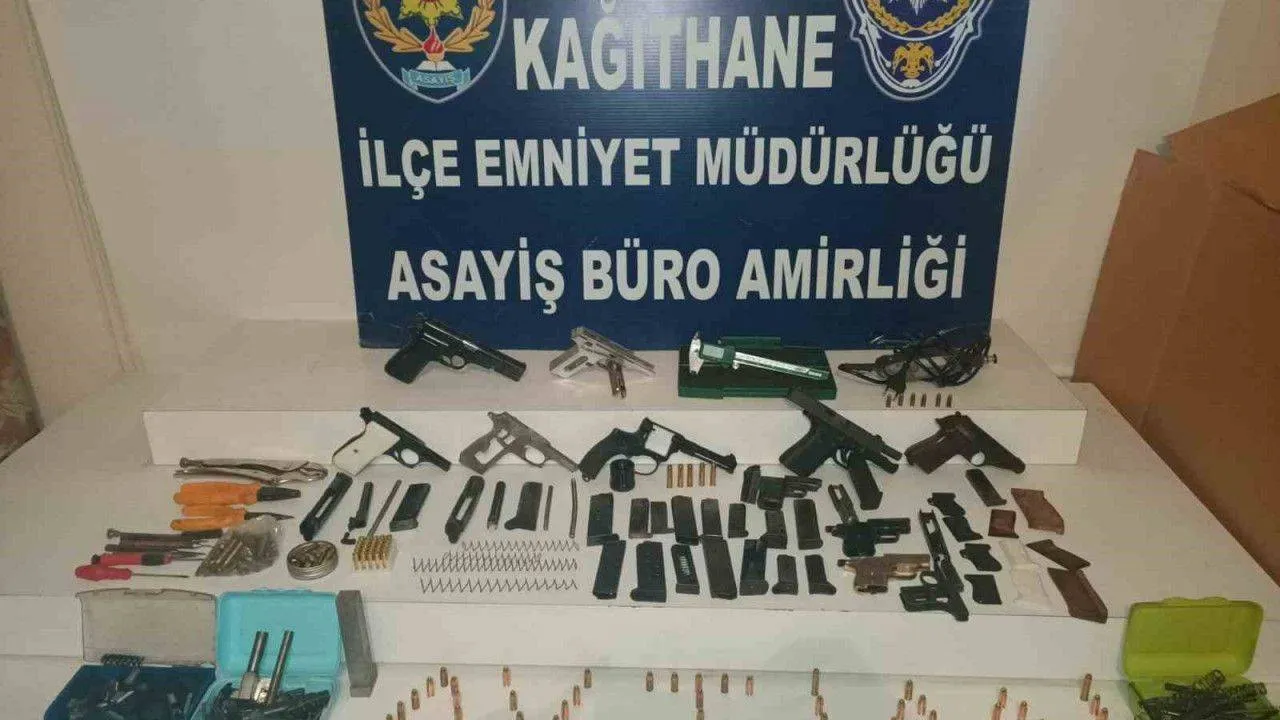 Kağıthane Asayiş Büro Amirliği ekiplerinin ihbar üzerine baskın düzenlediği ev silah imalathanesi çıktı. Baskında 11 adet ruhsatsız tabanca, silah yapımında kullanılan malzemeler ve mermiler ele geçirildi.