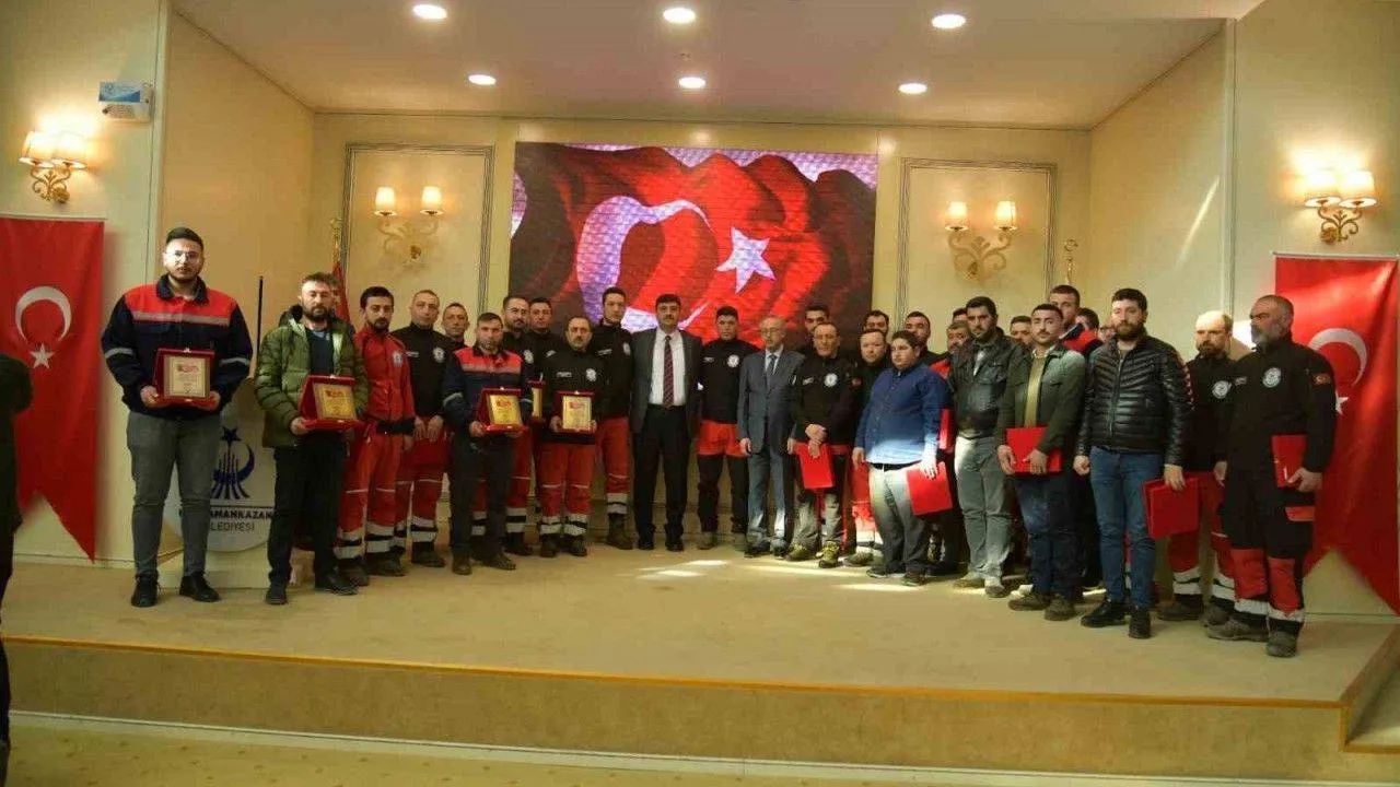 Programın ardından Kahramankazan Kaymakamı Abdullah Selim Parlar ve Kahramankazan Belediye Başkanı Serhat Oğuz afet bölgesinde fedakarca çalışan tüm arama kurtarma ekibi ve görevli personele plaket takdiminde bulundu.