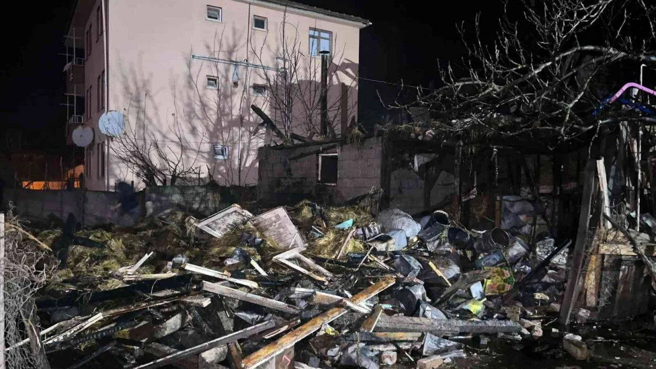Kalorifer kazanı patladı, alevler geceyi aydınlattı