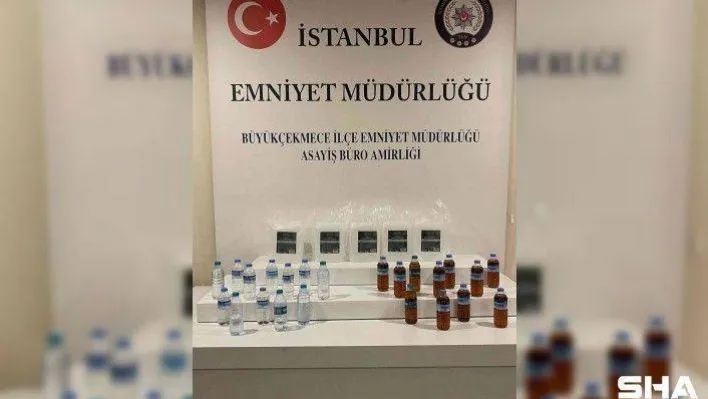 Büyükçekmece Kamiloba Mahallesi’nde bulunan bir adreste sahte alkol imalatı ve satışı yapıldığı yönünde bilgi alan polis ekipleri operasyon için harekete geçti. Adresin M.A. isimli şahıs adına kayıtlı olduğu belirlenmesinin ardından operasyon düzenlendi. Operasyonda M.A gözaltına alınırken, içeride yapılan aramalarda ise 5 adet 5 litrelik pet şişeler içerisinde toplam 25 litre etil alkol, 12 adet 0,5 litre pet şişeler içerisinde sahte rakı olduğu değerlendirilen 5,8 litre sıvı madde, 11 adet 0,5 litre pet şişeler içerisinde sahte viski olduğu değerlendirilen 5,5 litre sıvı madde ele geçirildi.