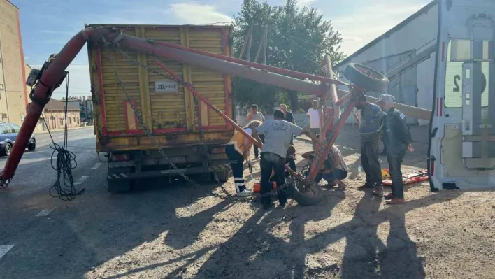 Tekirdağ’ın Muratlı ilçesinde kontrolden çıkan kamyon, bir işçinin ittirdiği buğday yükleme işinde kullanılan helezona çarpınca savrulan işçi yaralandı.