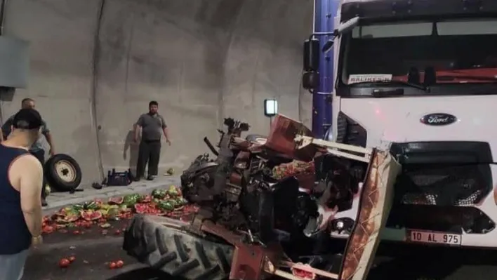 Çanakkale’nin Ayvacık ilçesinden Balıkesir’in Edremit ilçesine seyir halinde olan Hüseyin Özel idaresindeki 17 ET 902 plakalı traktöre, aynı şeritten gelen Sakip Özkaya idaresindeki 10 AL 975 plakalı kamyon arkadan çarptı. Kazada traktör sürücüsü Hüseyin Özel yaralanarak ambulansla Edremit Devlet Hastanesi’ne kaldırıldı. Kaza sonrasında bir süre kapalı kalan yolda, tek şeritten ulaşım sağlanırken, traktör kasasında bulunan karpuzlar parçalanarak, yola savruldu.