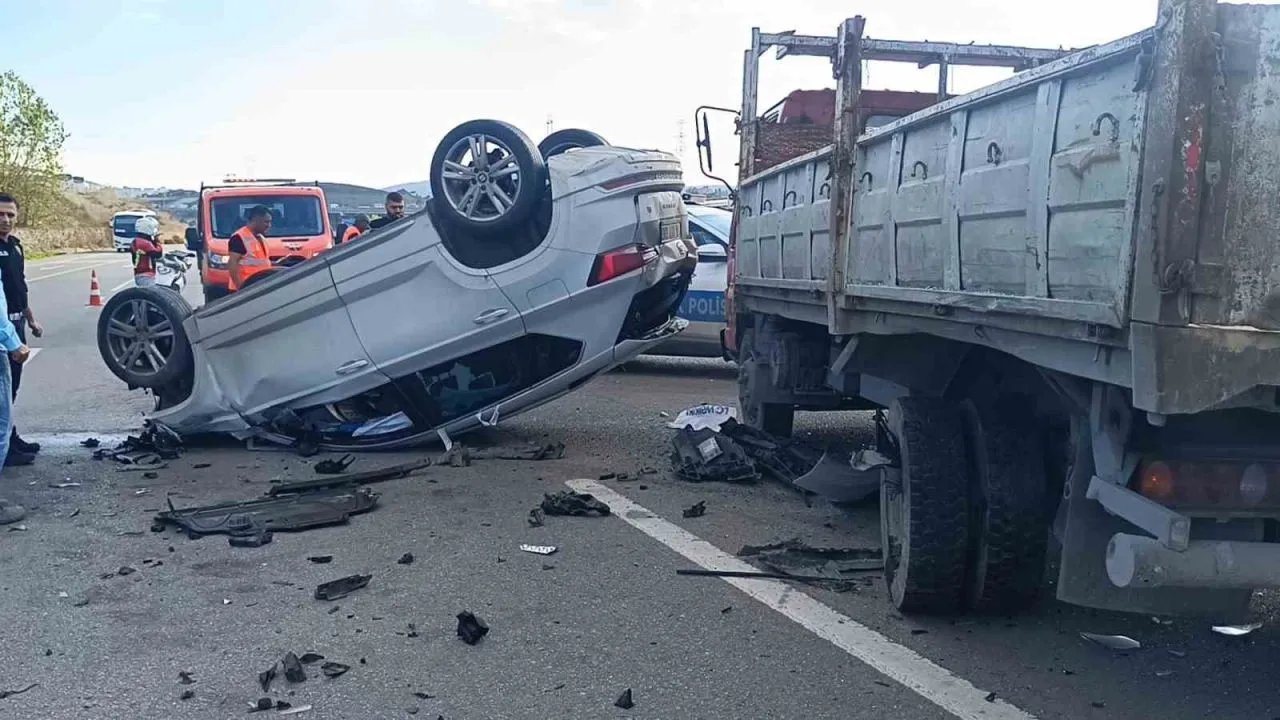 Kamyonete çarpan araç takla attı: 2 yaralı