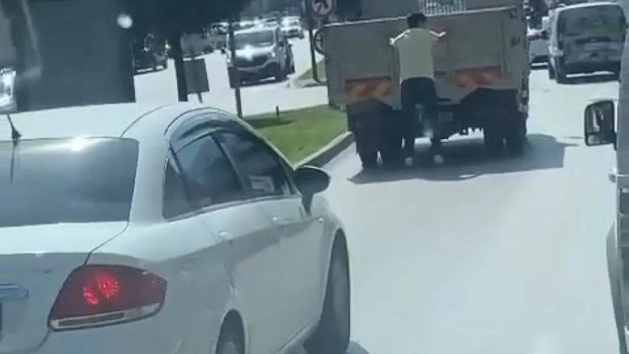 Bursa'da bir kamyonetin arkasına tutunarak ilerleyen patenli gencin trafikteki tehlikeli oyunu kameralara yansıdı. Trafiğin işlek olduğu bir saatte kamyonetin arkasına tutunarak yolculuk yapmak isteyen patenli genç, hem trafiği hem de kendi canını hiçe saydı.