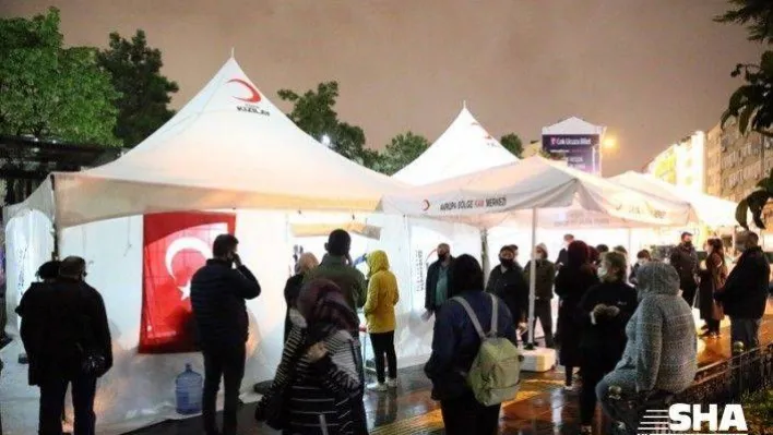 KAMPANYAYA BÜYÜK İLGİ GÖSTEREN VATANDAŞLAR, KAN BAĞIŞININ YAPILDIĞI ÇADIRLARIN ÖNÜNDE UZUN KUYRUKLAR OLUŞTURDU