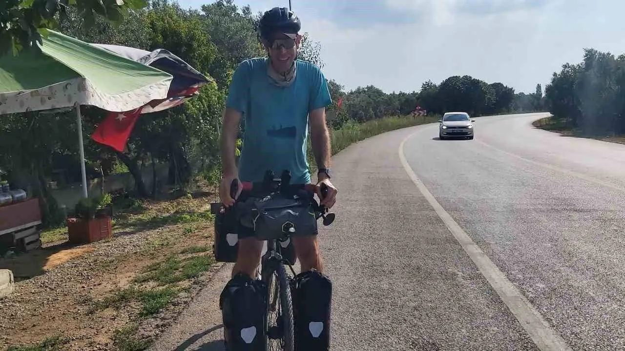 Kanada’da bankacılık yapan 40 yaşındaki 2 çocuk babası adam biriktirdiği parayla 2 bin 700 kilometre yol kat edip bisikletiyle Türkiye’ye geldi.