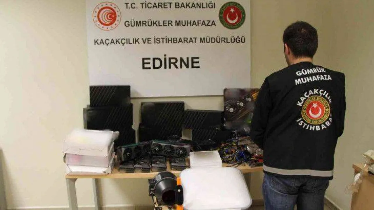 Şüpheli bir aracın bagajında ise, vergileri ödenmeden yurda sokulmak istenen coin üretiminde kullanılan 57 adet ekran kartı ele geçirildi.