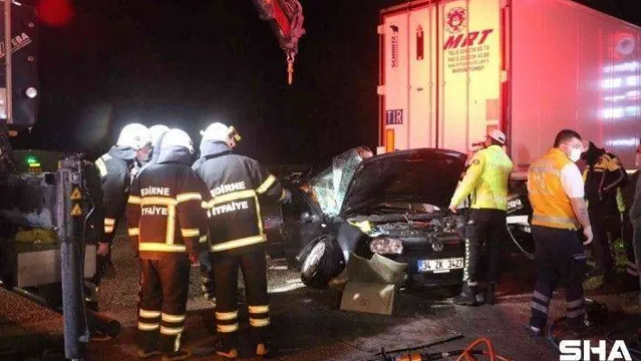 Edirne'de tıra arkadan çarpan otomobilde bulunan 2 kişi feci şekilde hayatını kaybetti.