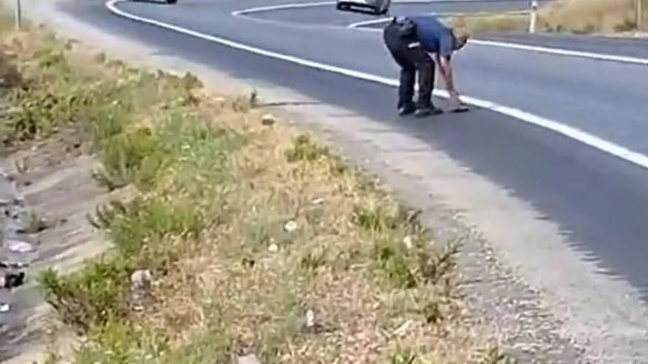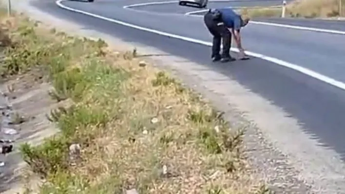 Kaplumbağayı ezilmekten kurtaran polis takdir topladı