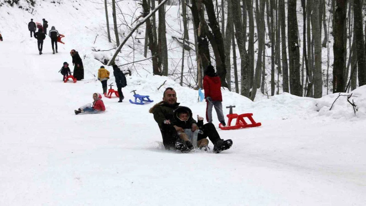 Kar yağışı sonrasında beyaza bürünen Sakarya'nın Akyazı ilçesinin yüksek kesimleri, Uludağ ve Kartepe'deki kayak merkezlerini aratmayan görüntülere sahne oldu. Kızağını alanın koştuğu bölgede vatandaşlar karın tadını çıkardı.