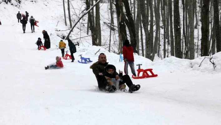 Kar yağınca eğlencenin merkezi oldu: Kızağını alan buraya koştu