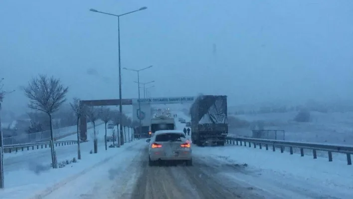 Kar yağışı nedeniyle araçlar yolda güçlükle ilerleyebildiler