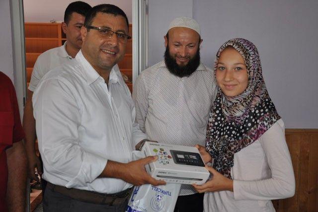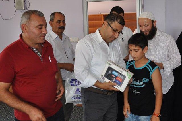 Silivri Gazitepe mahallesinde yaz Kuran kursunu başarı ile bitirerek eğitimini tamamlayan talebeler için Gazitepe Merkez camiinde düzenlenen merasime katılan AK Parti Silivri İlçe Başkanı Metin Karakaş, kursu başarı ile bitiren 4 öğrenciye tablet bilgisayar hediye ederek tebrik etti.