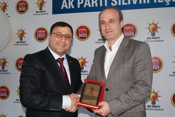 AK Parti Silivri İlçe Başkanı Metin Karakaş, başkanlığı döneminde Silivri İlçe Teşkilatı’ndan sorumlu olup toplantıya katılan milletvekilleri Prof. Dr. Mustafa Şentop ve Tülay Kaynarca’ya teşekkür plaketi takdim etti.