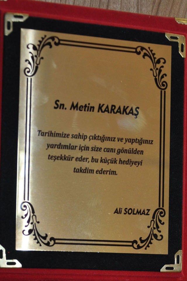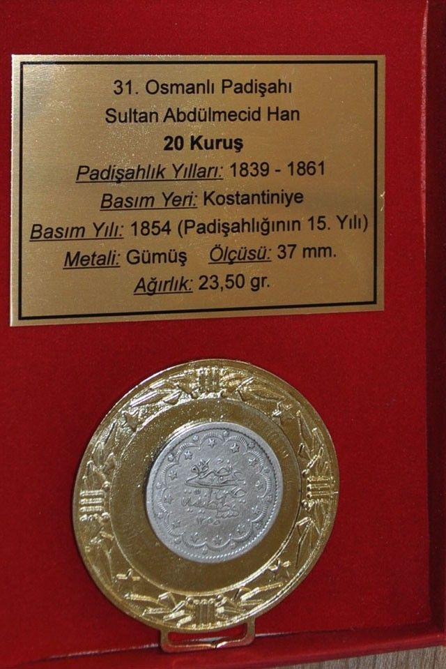 Ali Solmaz ayrıca Karakaş’a katkı ve desteğinden dolayı teşekkür ederek, kendi koleksiyonuna ait Sultan Abdülmecit Han’ın Konstantiniye de bastırttığı Gümüş 20 kuruş değerinde ki orijinal Osmanlı parasını hediye etti.