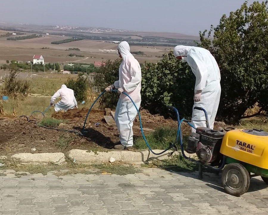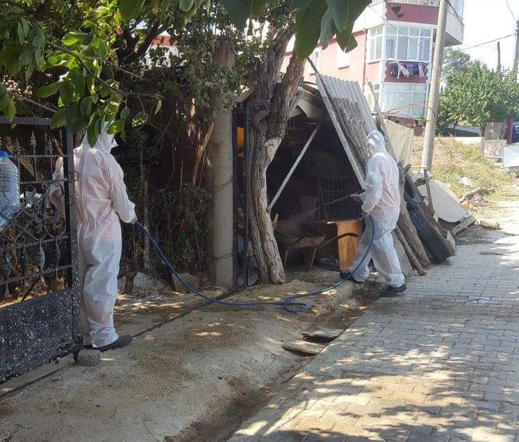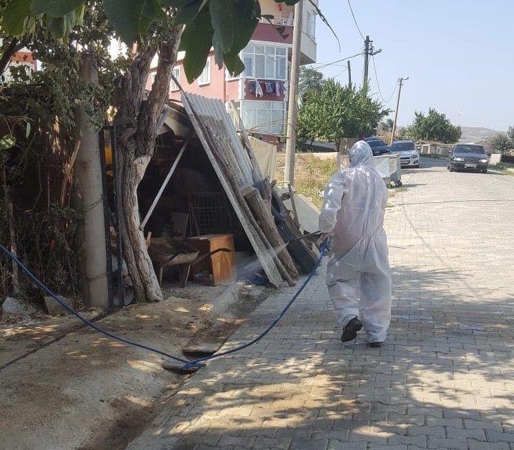 Karantinaya alınan mahallelerde ilaçlama devam ediyor