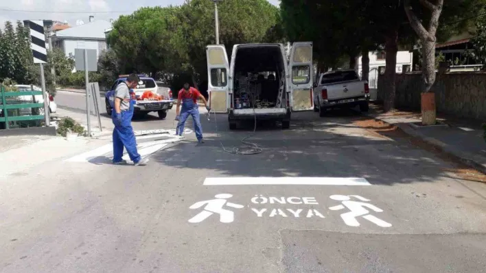 Karesi'de Okul önlerindeki yaya çizgileri yenileniyor