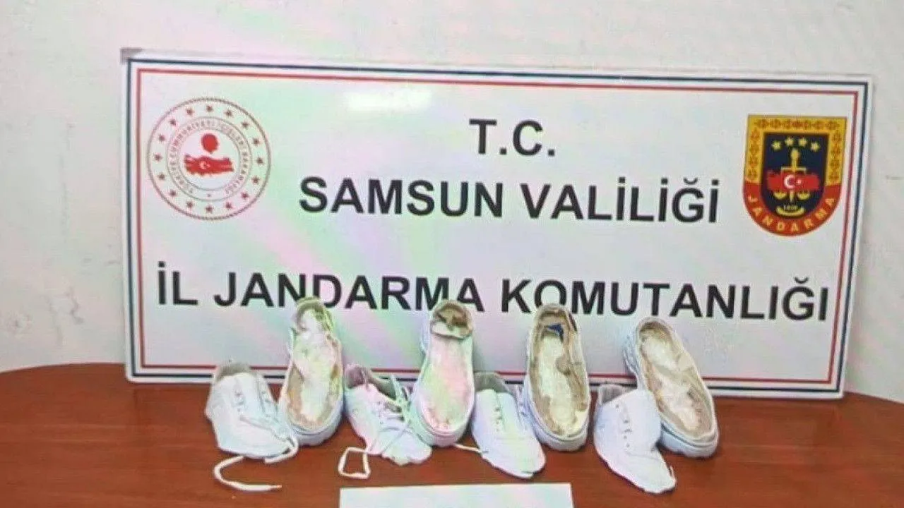 Samsun'da jandarma ekipleri kargo ile gönderilen ayakkabıların tabanına gizlenmiş 1 kilo 450 gram metamfetamin adlı uyuşturucu ele geçirdi.