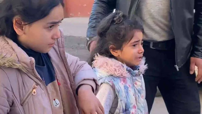 Karne alacak olan 7-8 yaşlarındaki 2 kardeş yanan evlerini görünce gözyaşlarına hakim olamadı. Polis yangınla ilgili inceleme başlattı.