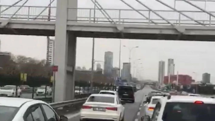 Kartal'da düğün konvoyu oluşturan şahıslar, diğer araçların geçişini engelleyerek sürücülere zor anlar yaşattı. O anlar cep telefonu kamerasına yansıdı.