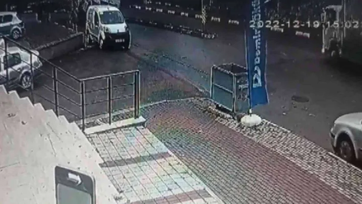Yaşanan kaza anı bir iş yerine ait güvenlik kamerasına yansıdı.
