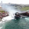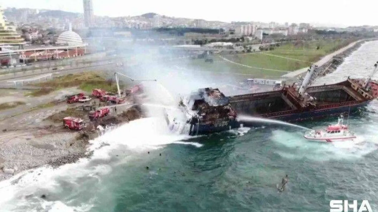 Kartal’da Kumcular İskelesi’nde karaya oturmuş halde bulunan ve şiddetli fırtınada yan yatan Boras isimli gemide yangın çıktı. Karadan ve denizden yapılan müdahale ile gemideki yangın kontrol altına alındı. Yangının gemide bıraktığı tahribat ve devam eden soğutma çalışmaları havadan görüntülendi.