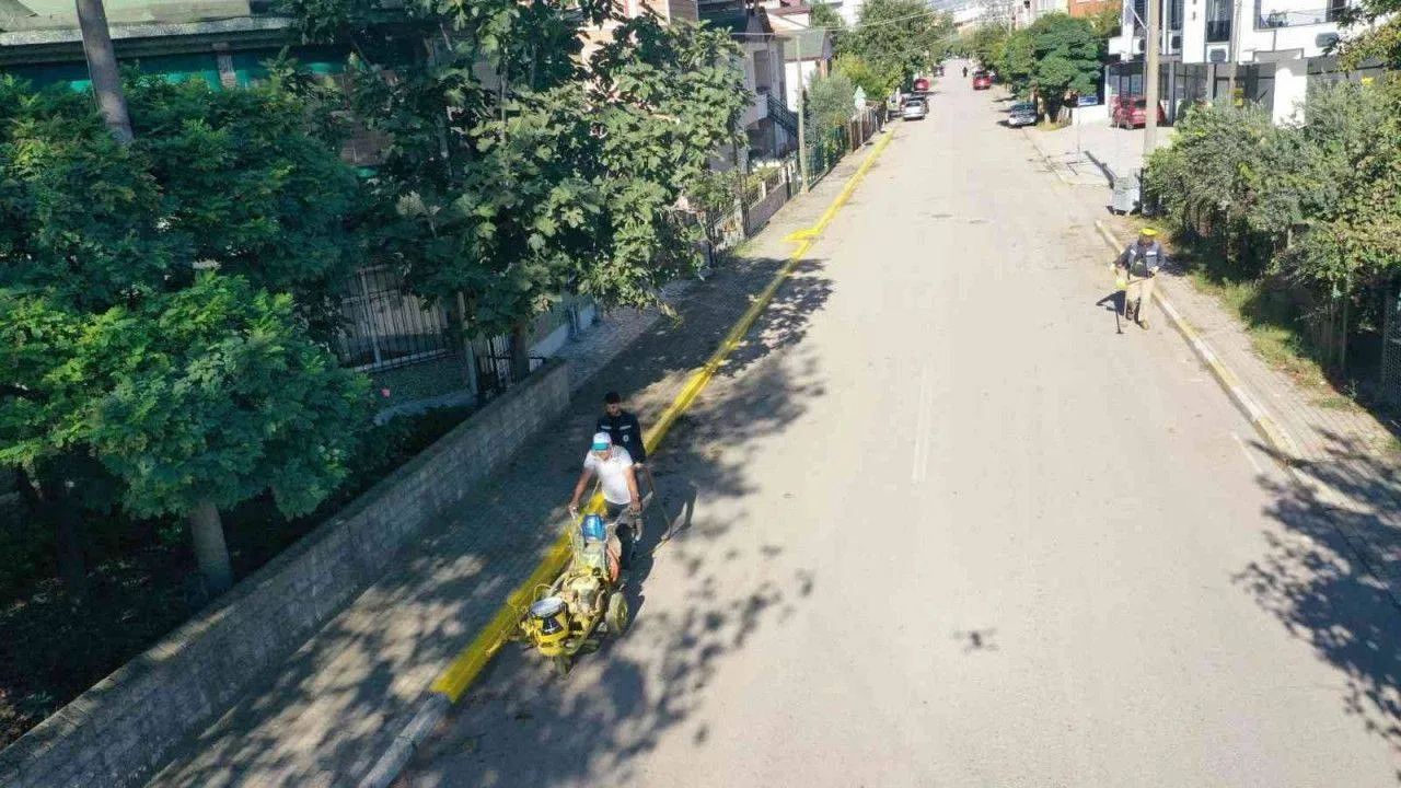 Kartepe’de güvenli trafik akışı ve görüntü kirliliğinin ortadan kaldırılması amacıyla bordür taşları boyandı.
