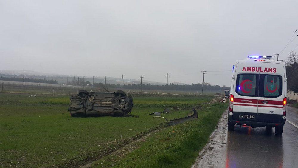 Kaza, öğle saatlerinde Kavaklı Kadıköy yolu üzerinde meydana geldi. Yağan yağmurla kayganlaşan yolda direksiyon hakimiyetini kaybeden özel araç yol kenarındaki tarlaya takla atarak uçtu. Araç içerisinde bulunan sürücü yaralandı. Yaralı sürücü olay yerine gelen ambulansla Silivri Devlet Hastanesine kaldırıldı.