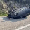 Kayalara çarpan otomobil takla attı, emniyet kemeri sayesinde kurtuldular