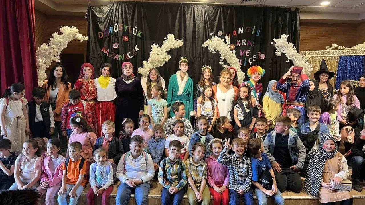 Kaynarca Belediyesi Tiyatrosu ekibi tarafından sahnelenen 'Hangisi kral ve kraliçe' adlı tiyatro oyununu izleyen minikler, iyiliğin ve dürüstlüğün önemini eğlenerek öğrendi.