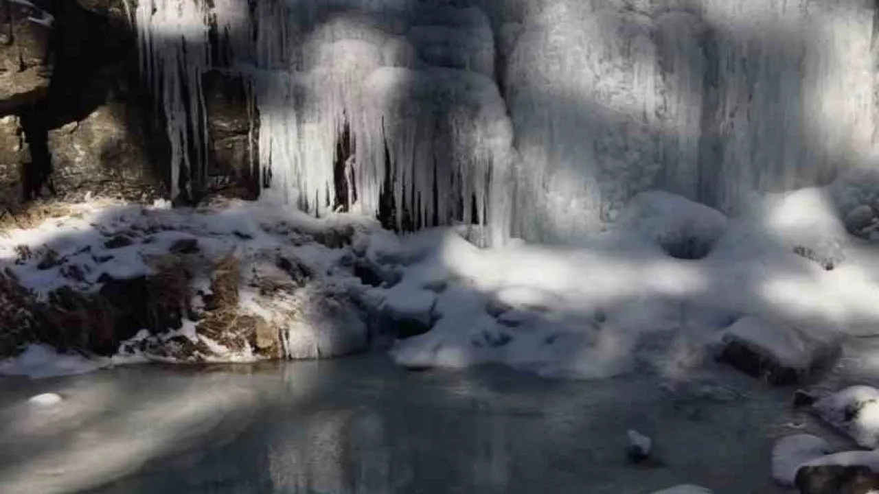 Çanakkale’de Kazdağları’nda-12 derece havada donan şelale görsel oluşturdu. Buz kaplı şelale dron ile görüntülendi.