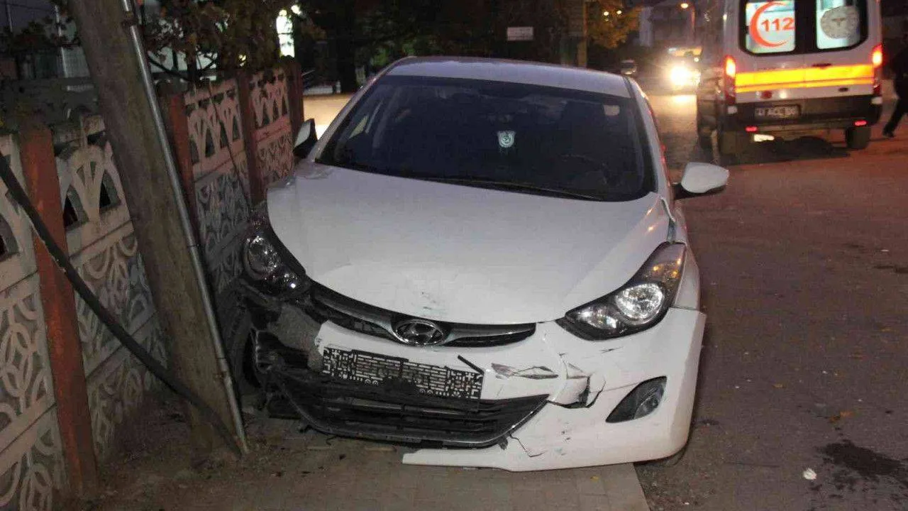 Kaza sonrasında savrulan otomobil, direğe çarparak durabildi