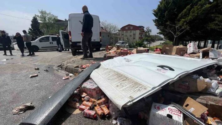 Kocaeli'nin Derince ilçesinde hafif ticari araç ile çarpışan panelvanın içinde bulunan meşrubatlar yola saçıldı, bir kişi ise yaralandı.