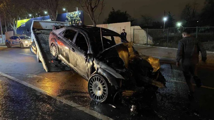 Kadıköy'de kaza yapan lüks otomobilden kısa sürede alevler yükselmeye başladı. Alevlerin sardığı milyonluk otomobil ise kullanılmaz hale geldi.