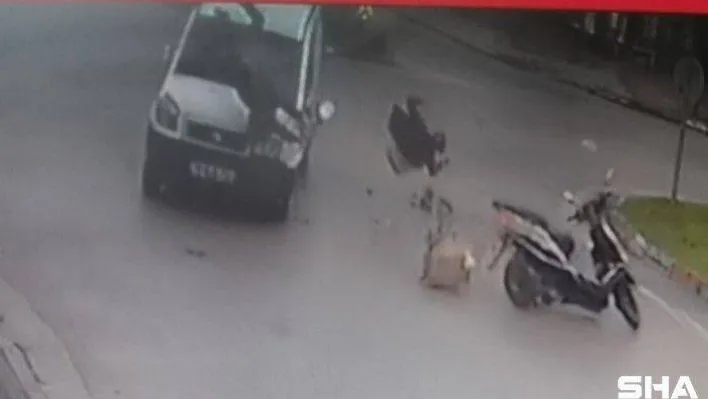 Bursa'nın İnegöl ilçesinde hafif ticari araç ile motosiklet çarpıştı. 2 kişinin yaralandığı kazada motosikletteki yolcunun kucağında bulunan kutudaki güvercinler böyle havalandı. Yaşanan kaza saniye saniye güvenlik kameralarına yansıdı.