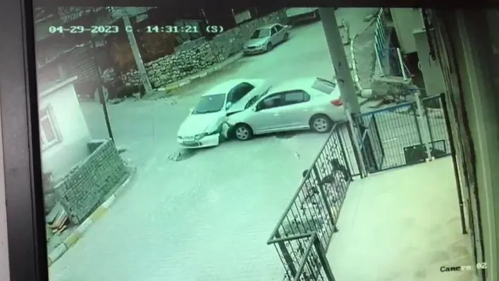 Öte yandan kazanın meydana geldiği an, çevredeki güvenlik kamerasına saniye saniye yansıdı. Görüntülerde iki otomobilin dörtyol üzerinde çarpıştığı, otomobillerden birinin çarpışmadan sonra geri geri savrularak bina duvarına çarptığı ve sokakta oynayan çocukların kazadan korkarak uzaklaştıkları görüldü.