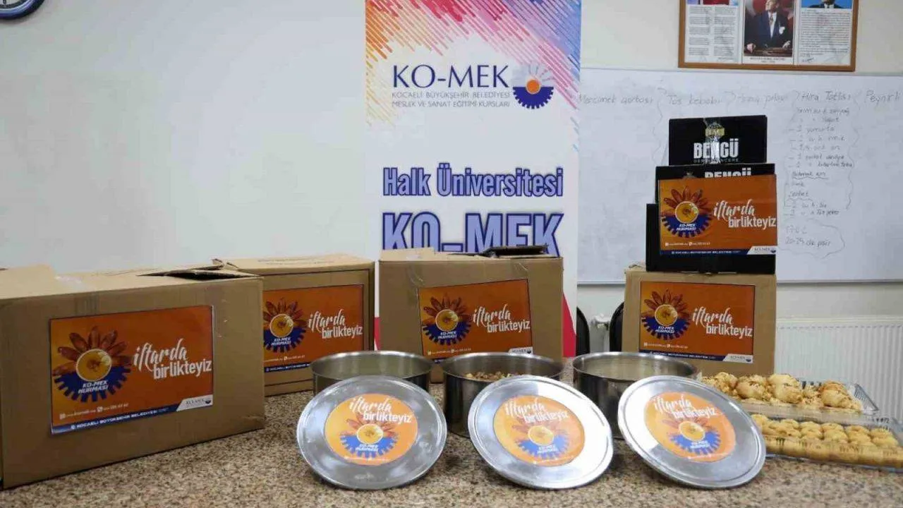 Kocaeli Büyükşehir Belediyesi her yıl olduğu gibi bu yıl da ihtiyaç sahibi aileler için "KO-MEK Hurması Projesi" başlattı. Proje kapsamında Kocaeli Büyükşehir Belediyesi Meslek ve Sanat Eğitimi Kursları (KO-MEK) kursiyerlerinin hazırladığı yemekler, ihtiyaç sahibi ailelerin sofralarını zenginleştiriyor. 12 ilçede belirlenen ihtiyaç sahiplerine kurs merkezlerinde hazırlanan iftarlıklar titizlikle ulaştırılıyor. Aynı zamanda aileler ile iletişime geçilerek, müsait oldukları bir akşamda Türk mutfağı branşı usta öğreticisi ve kursiyerlerinin birlikte hazırladığı 3 çeşit yemekle iftara gidiliyor. Yemek dışında gerekebilecek tüm malzemeler de beraberinde götürülüyor.