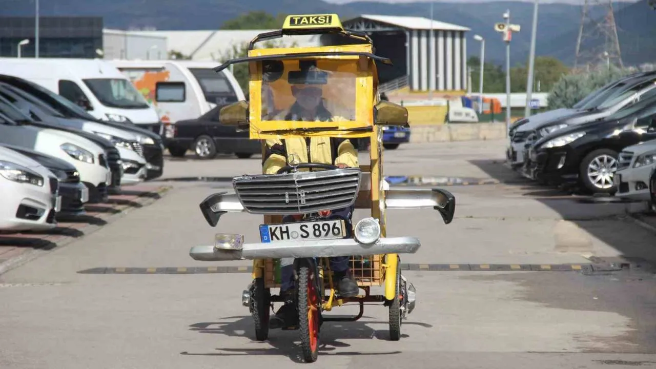 Kocaeli’nin Gölcük ilçesinde yaşayan Latif Güç, kendi eliyle yaptığı ve "Sarı Mercedes" ismini verdiği üç tekerlekli bisikletiyle sokak sokak dolaşıyor. Mercedes logosu, teybi, aynaları, hatta plakası bile bulunan bisiklet, görenleri kendine hayran bırakıyor.