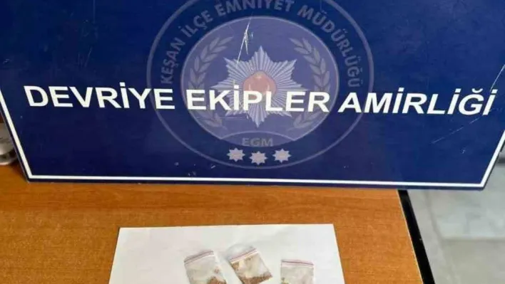 Edirne'nin Keşan ilçesinde, polisin şüphe üzerine durdurduğu iki kişinin üst aramasında sentetik ecza ile uyuşturucu ele geçirildi.