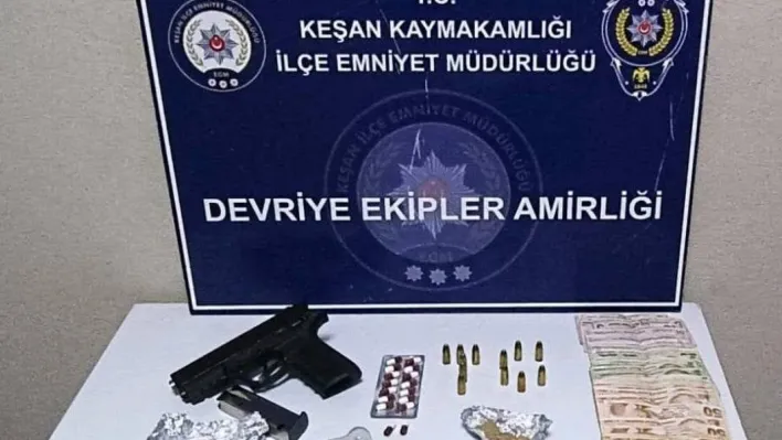 Edirne'nin Keşan ilçesinde polis ekiplerince şüpheli bir şahsın üzerinde ve evinde yapılan aramalarda, uyuşturucu, ruhsatsız tabanca ile av tüfeği ele geçirildi.