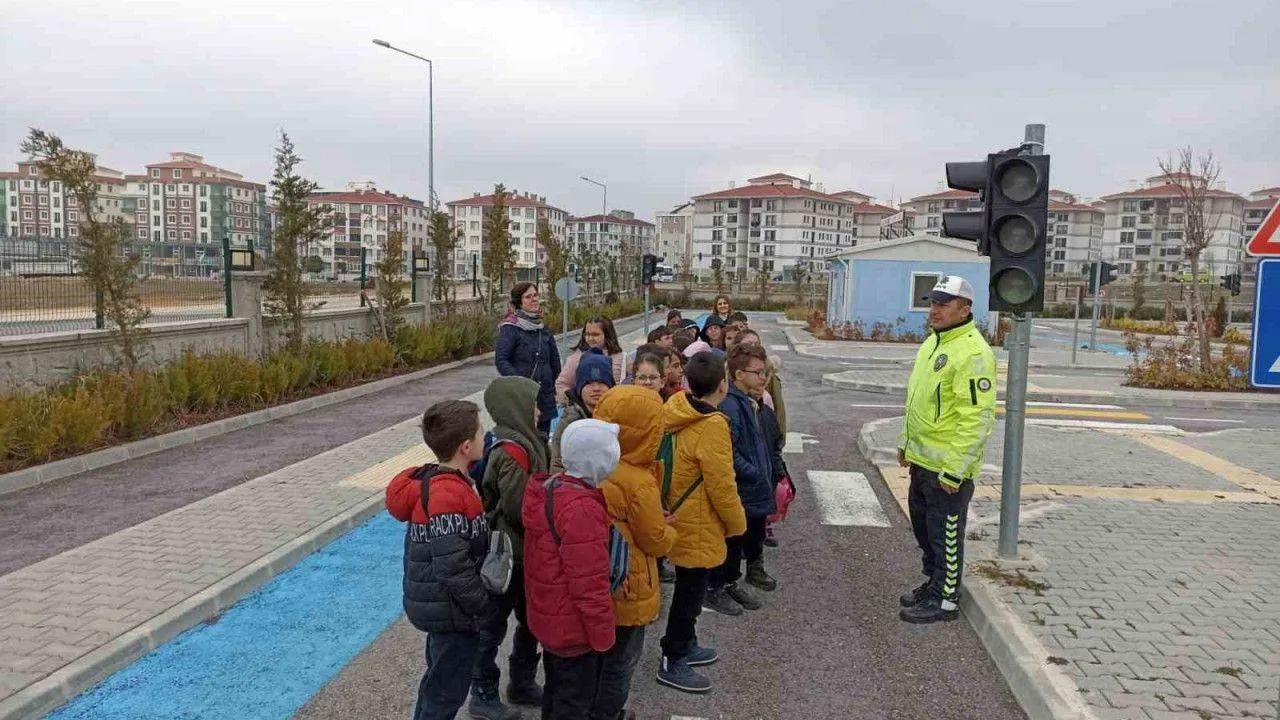 Polisi ekiplerince trafik ışıklı yaya geçidi ile ışıksız yaya geçitlerinde karşıdan karşıya nasıl geçileceği, ayrıca emniyet kemerinin önemi çocuklara ve velilerine de detaylıca anlatılarak, uygulamalı eğitim yaptırıldı. Öğrencilere, işaret levhalarının ne anlama geldiği öğretilerek, trafik güvenliği alanında öğrencilerin ve çocukların dikkatli olması gerektiğini vurgulandı.