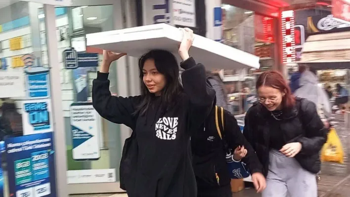 Yağış sebebiyle bazı vatandaşlar şemsiyeleriyle korunmaya çalışırken, bazıları da otobüs durakları, dükkanların tenteleri altında korunmaya çalıştı.