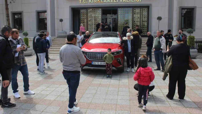 Türkiye’nin yerli ve milli otomobili Togg, Tarihi Kırklareli Valiliği önünde sergilendi. Valilik önünde yerli otomobili gören vatandaşlar araca ilgi göstererek, telefonla fotoğraf çekilme yarışına girdi.