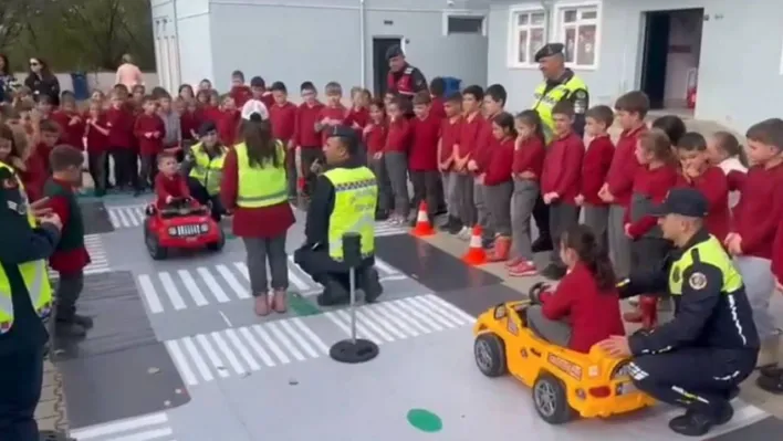 Kırklareli'nde İl Jandarma Komutanlığı ekipleri tarafından ilkokul öğrencilerine trafik eğitimi verildi.