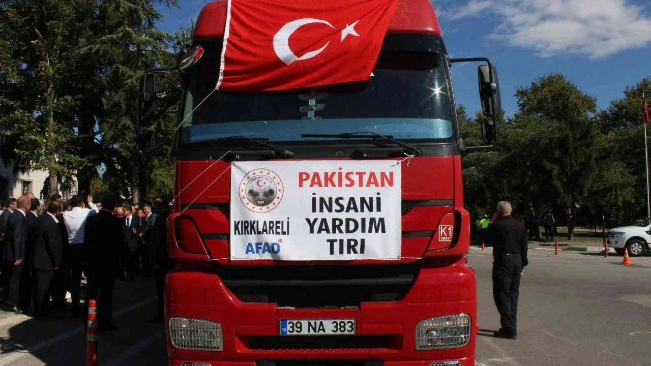 Pakistan’da meydana gelen sel felaketinden etkilenen afetzedelere yardım eli uzatmak amacıyla Cumhurbaşkanı Recep Tayyip Erdoğan’ın talimatları doğrultusunda İçişleri Bakanlığı Afet ve Acil Durum Yönetimi Başkanlığı öncülüğünde ülke genelinde eş zamanlı olarak yardım kampanyası başlatılmıştı. Kırklareli’nde de Valiliğin koordinesinde yürütülen yardım kampanyasında toplanan aynî yardımlar düzenlenen törenle yola çıktı.