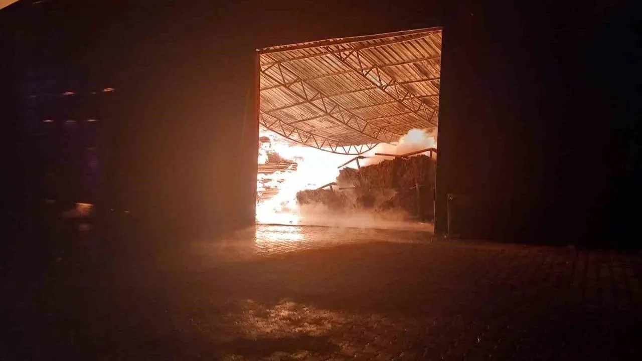 Fabrikanın içerisinde yanan ağaçlar ve odunlar itfaiye ekiplerinin işini zorlaştırırken, yangını söndürme çalışmaları devam ediyor.