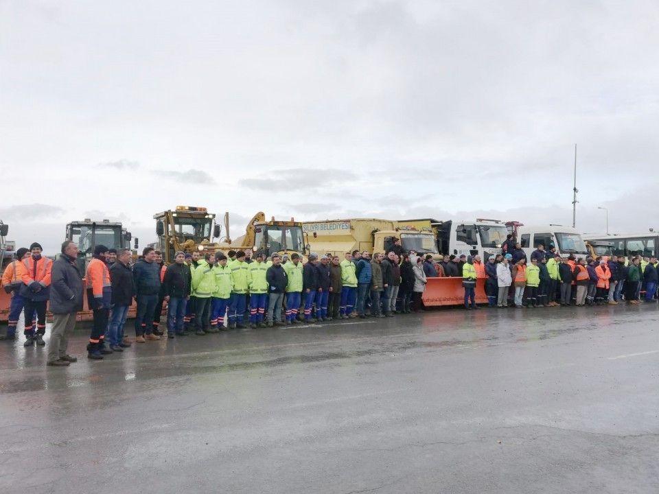 Silivri Belediyesi, kış mevsimi hazırlık çalışmaları kapsamında olası yoğun kar yağışı ve afet öncesinde karla mücadele ekip ve ekipmanlarını hazırladı. 307 personel çalışmalarda görev yapacak.