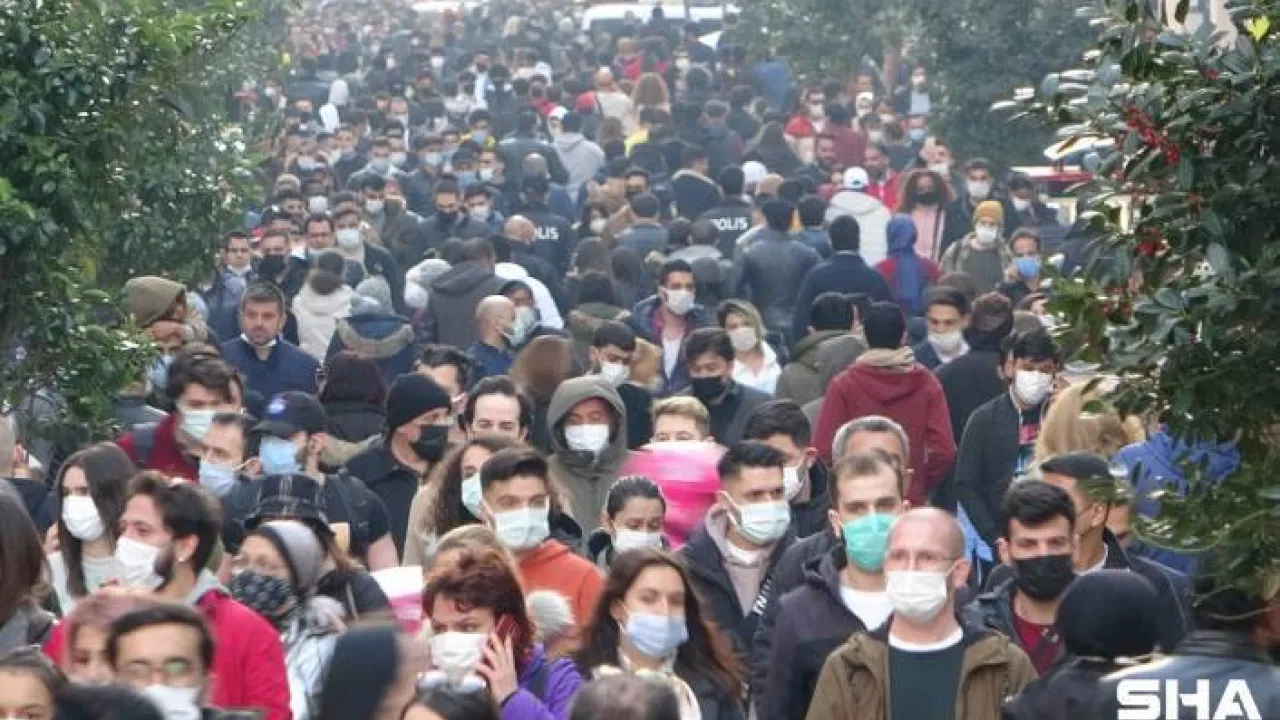 Kısıtlama öncesi İstiklal Caddesi'nde insan seli