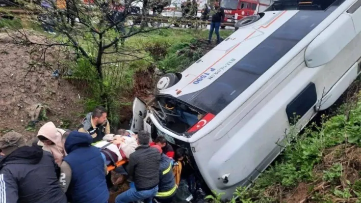 Kocaeli'nin Gebze ilçesinde şarampole uçan servis midibüsünde 8 işçi yaralandı.